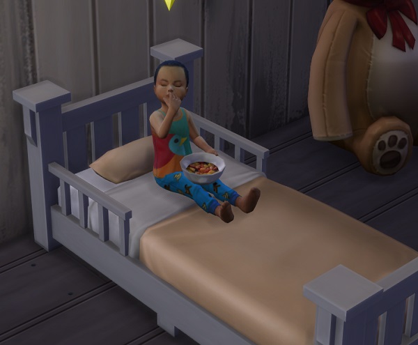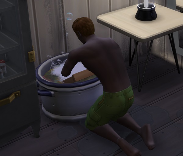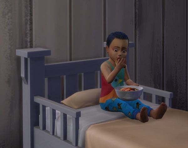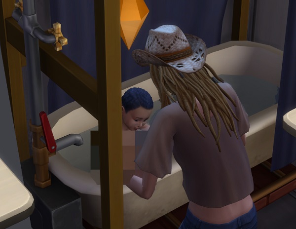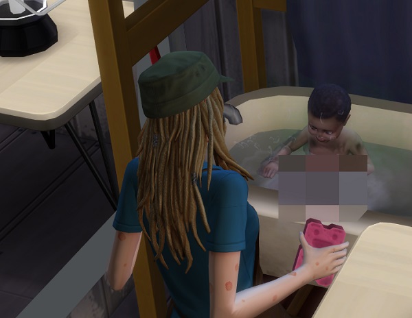 (A/N: you can’t queue up giving a toddler a bath, and they can’t ask for one on an off the grid lot. However, if a toddler is left on his own, apparently he (or she) can ask autonomously for a bath and the parent will comply. Just a note for other people trying this challenge or any other off-the-grid challenge..)