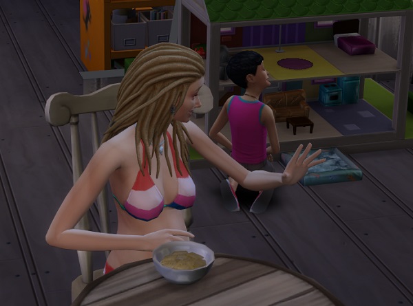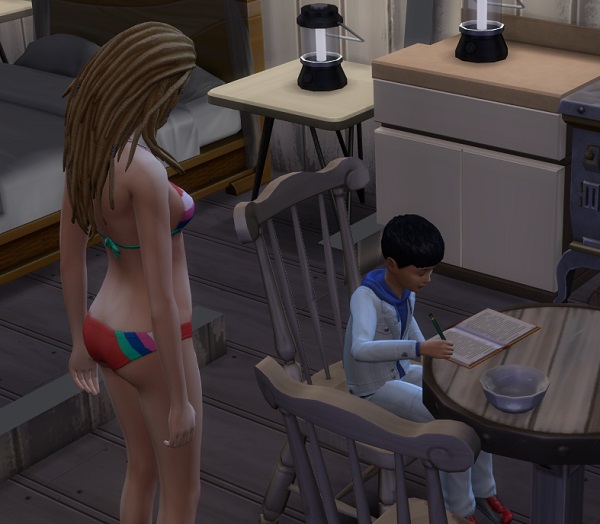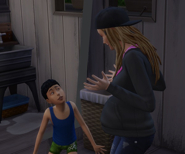 (A/N: So.. I have good news and bad news. I was so happy with Tevin, that I had let “fate” decide.. and when they tried for baby and failed while Tevin was still a toddler, I figured it was destiny. So I sold the baby crib and played on with his toddler years. I blithely gave him the Klepto trait per the next generation’s rules and settled in to let him grow up and learn at school. It wasn’t until another couple days had passed that I re-read the rules and suddenly remembered it had to be a FEMALE heir.. so I was thrown back into the baby-making deep end. You’ll love the result. I sure didn’t, though! –Also of note, as of yesterday, I signed this challenge up to be in the SimNaNo over at boolprop forums, with the goal to publish one 1000+ word chapter a day for the whole month of July! I have several updates just waiting, and more to come, so expect this story to move along pretty quick for a while here.)