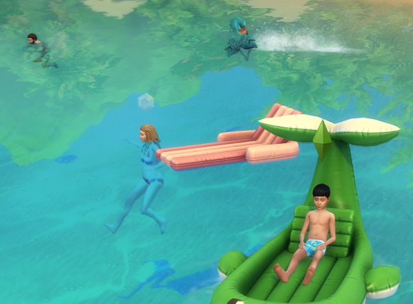 Tevin got a bit tired, however, so he commandeered his favorite community pool lounger and took a nap. This photo caught me mid-change into my mermaid tail, so if I look a little weird – that’s why. Nalani, our favorite local mermaid was also around, cavorting in the waves, just like us.