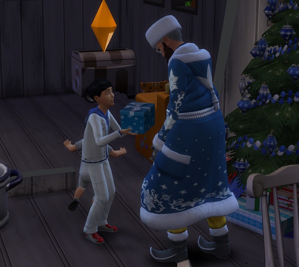 Father Winter complied happily (while the toddlers were off getting into trouble, of course), and Tevin was really happy with his new toy.