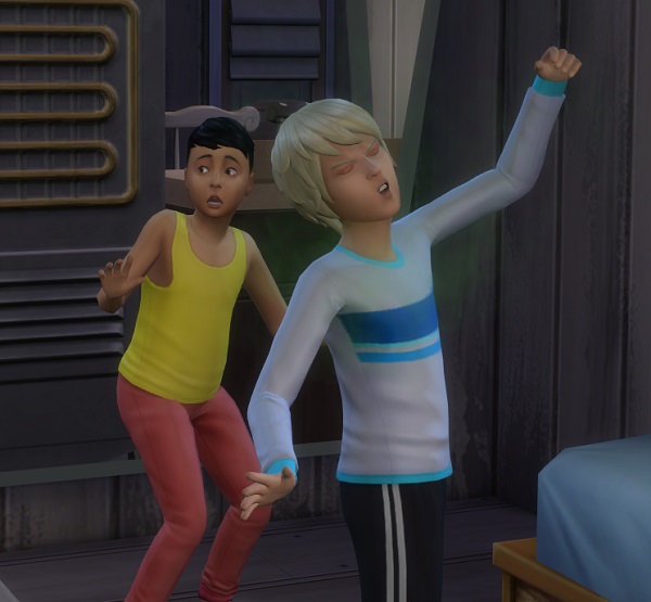 The monster strikes again at night. Kaleb looks completely done with the whole idea, and Corina is just scared. I can’t blame her. If tentacles were coming out from under my bed and making noises, I’d be scared, too. It takes a couple hours to get everyone back in bed after the hullabaloo, so everyone will be tired again tomorrow. Joy.