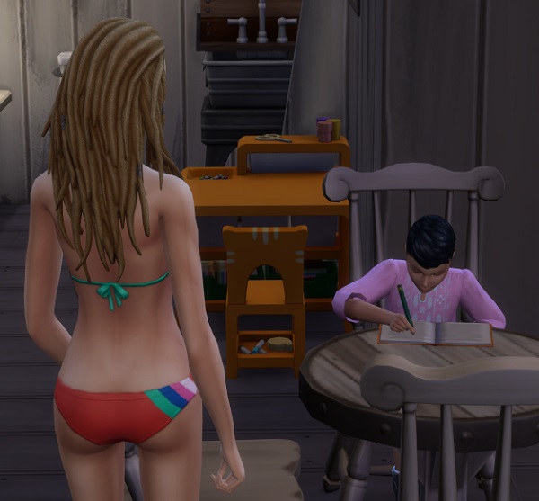 After her shower, Corina’s homework turns out to be less complicated, so with my help she breezes right through it, leaving her plenty of time to play before bed.