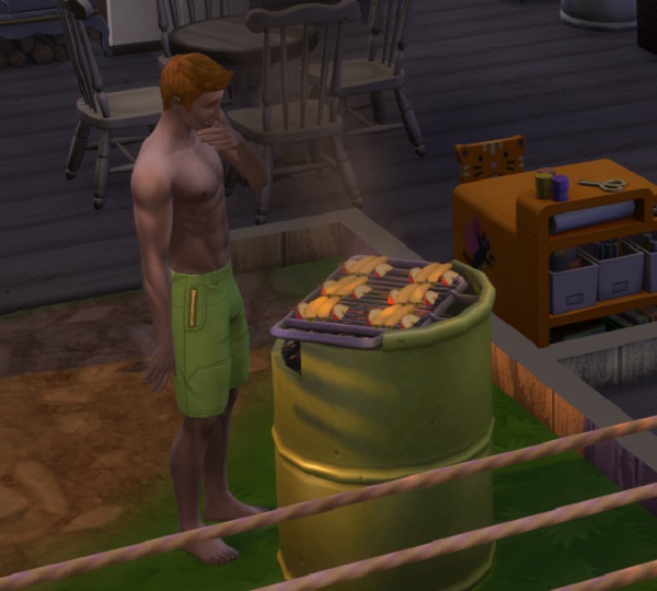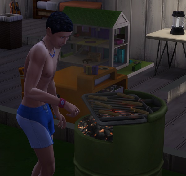 Which I bring up because Tevin tries to start a fire by attempting to learn to cook on the grill. Luckily, nothing happens.