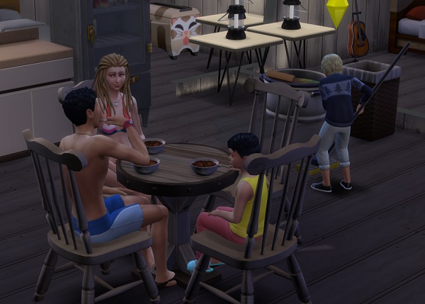 … and everyone gathers around the table as a family to enjoy it… Except for Kaleb, who decides he’d rather clean the house. Silly kid.