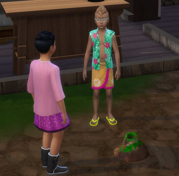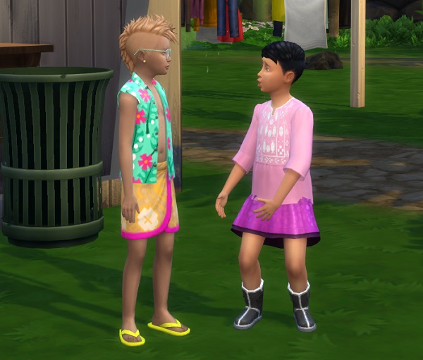 Kaleb came home from school stinky, but insisted on playing with Rarahu anyway. I suggested they do something useful, but Rarahu needed to vent at the moment, so they just chatted for a while instead.