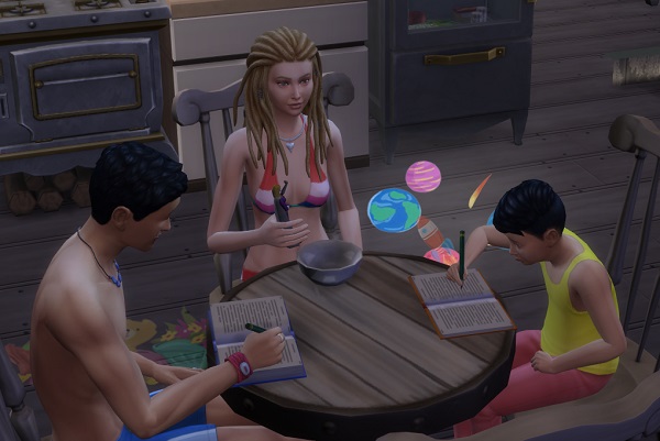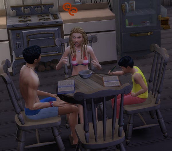 I have to say, I’m sick and tired of that monster bugging my babies, though. I tried yelling at it tonight, but it didn’t help anything except my frustration level. Tevin is usually the first to get woken up, but before long, the whole household is up – all because the monster just won’t leave us alone. It’s nearly time for school before I get everyone back into bed, which is terribly frustrating and makes for lots of grumpy sims the next day!