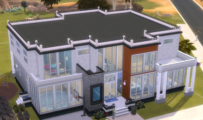 ….. And here’s where I go a little off the “rails”…. i.e. I stop playing, and wonder why I’m disliking this family so much. My conclusion: I HATE their house. And it’s not like they don’t have 70k+ in the bank…. So when everyone goes to school/work except for Alan, I painstakingly put everything into the family inventory and pull down all the walls/floors/roofs…. and start completely over. Nearly 7 hours of work later – this is the result.