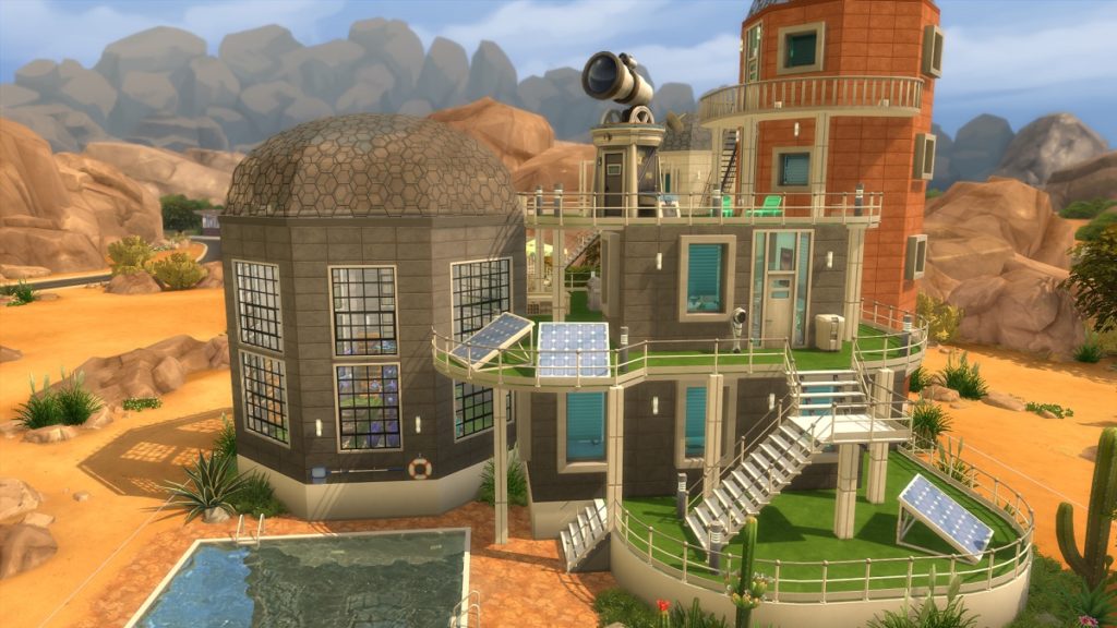 For this build, I had no clear idea when I started building… and then after a couple hours of building on stream and seriously not liking what I was coming up with, I bulldozed it after getting offline and just started over. I had a vague idea of observatory towers, and rounded green decks.. which I will say, I’m totally not great with rounded shapes. So I spent hours messing around with things until I had a shell I sorta liked. From there, decor and furnishings took me ages. I had to look up tutorials for the landscaping, because I really am terrible at it. I’m not sure the landscaping is any better after the tutorials, but maybe practice will help! Download here: https://www.ea.com/games/the-sims/the-sims-4/pc/gallery/E46E373C0C0D11EB80F2F0D5F16F4E6F (Also: I apologize about the absolute mass of photos I took.. it’s clear that I really liked how this turned out!)