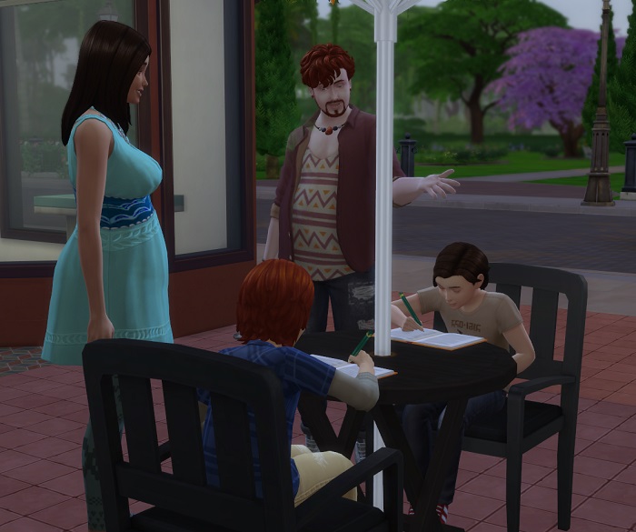 The twins gave up on trying to talk to their parents, and engaged the vampire stranger’s attention.