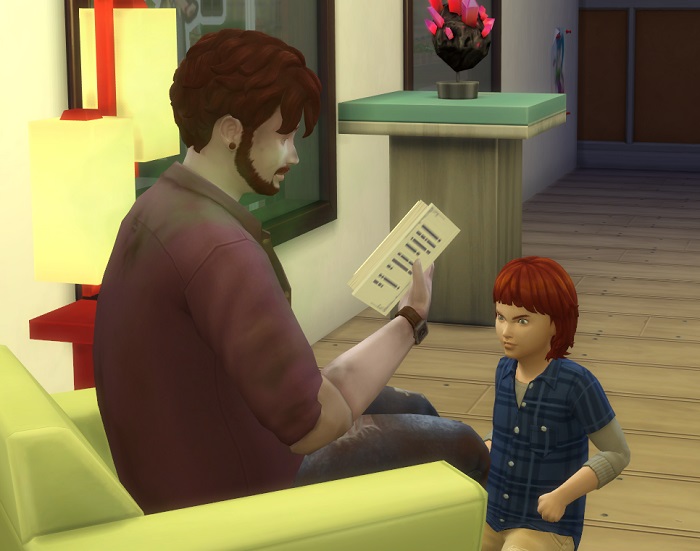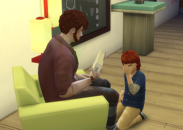 He then grabbed a book, and forced Jaz downstairs for some reading practice. Why he chose this as punishment, nobody knows… but it certainly worked.