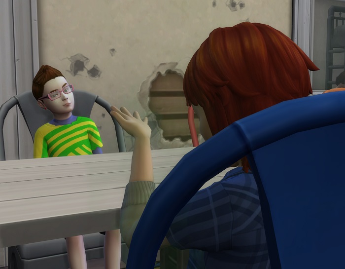 When it didn’t seem to be helping much, Jaz tried her best to calm Colin down. It worked… mostly. Then he was just sad, and seemed to be fighting tears. Jazmyn, quite frankly, didn’t know how to handle it, so she tried joking around with him.
