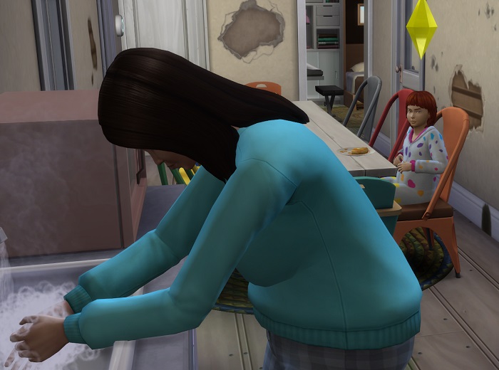 Marnie was washing dishes, leaving the kids to eat cold, gummy pancakes from the day before. I’m not sure whether this is what annoyed Jaz, or whether she was mad at the mice, or Brett.. or.. well, she was just mad.
