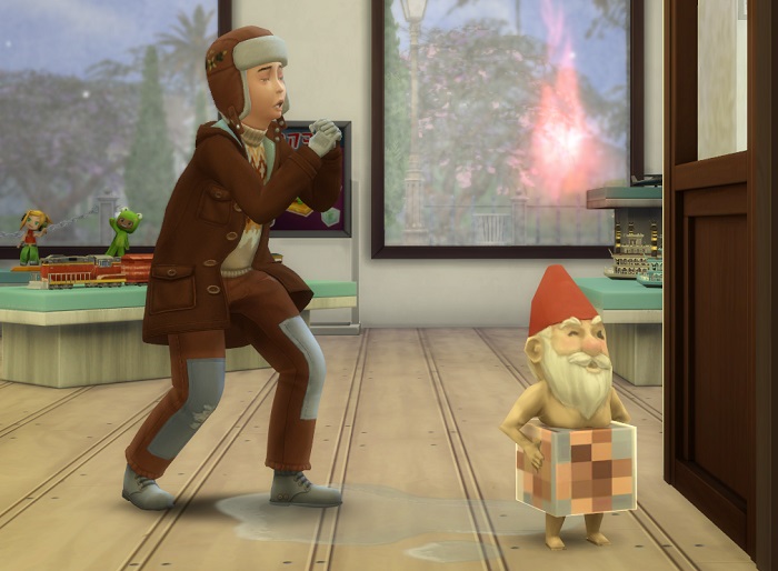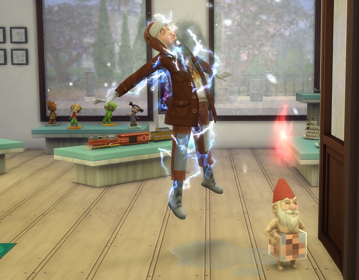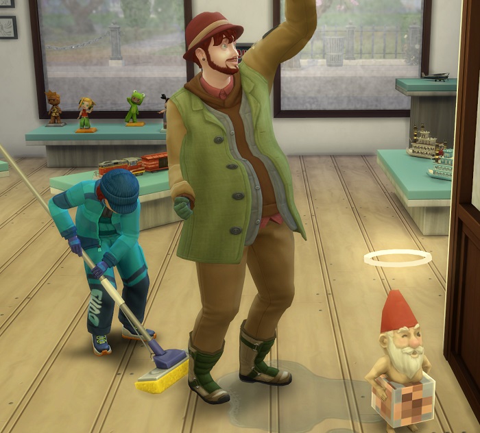 Marnie (specifically waiting until Bennie had cleared the store) came down, found the last gnome, and expertly handed it a future cube, to the gnome’s delight.