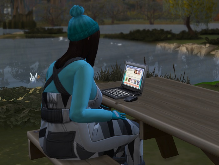 Instead, she was outside with a portable computer. Was it hers? She wasn’t telling. But she certainly had a secret smile on her face as she watched the fish jumping in the water in front of her.