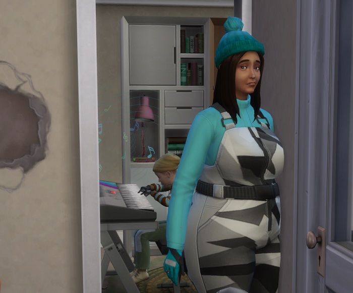 Back in the library, Bella played at a chess board, keeping an eye on the youngsters, but unconcerned that Marnie had disappeared. She seemed to be enjoying her holiday away from her crying newborn back at home.