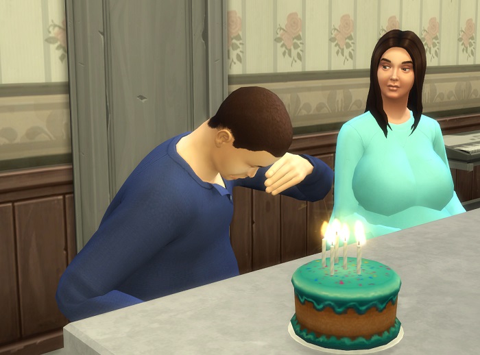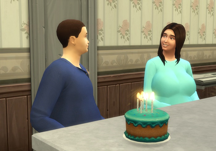 Sitting her down, he thanked her for making the cake… then told her about the party.