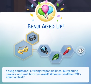 More info for those interested: here are the age-up cards for all teens that aged up with Benji in the world. First: the Kleptos: