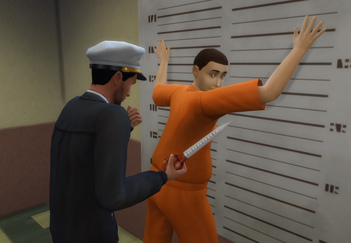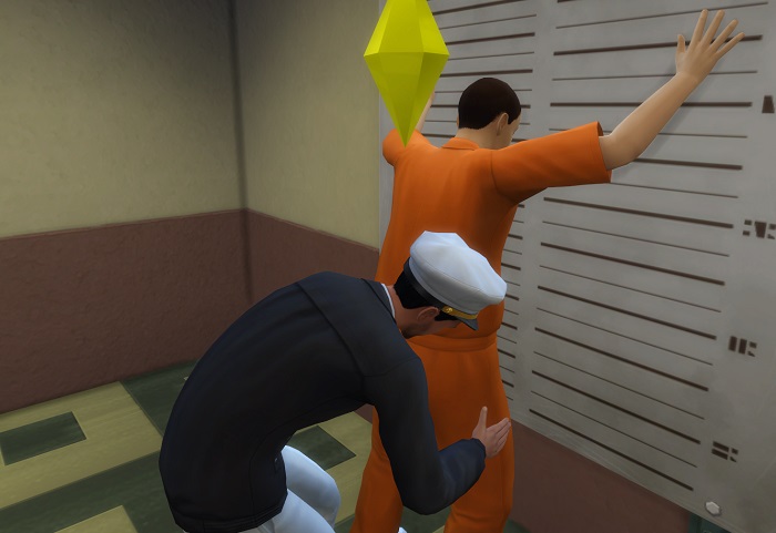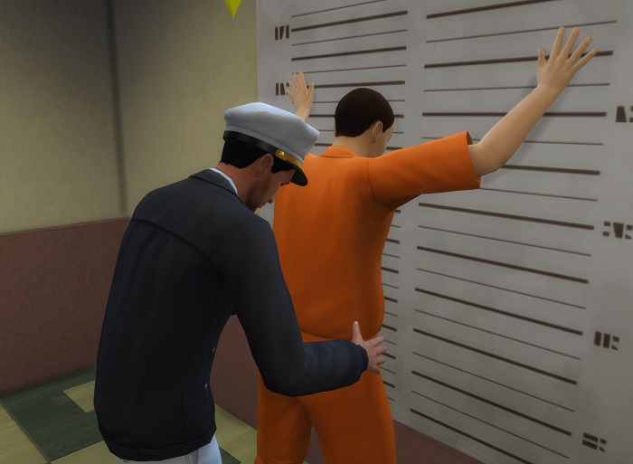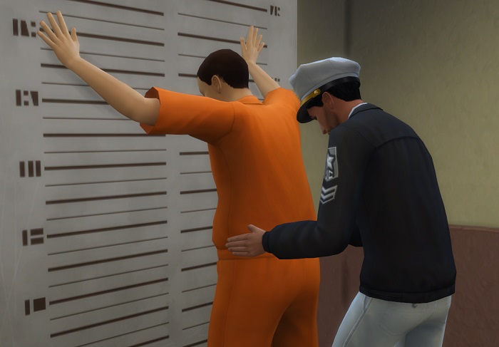 His picture was taken, then they instructed him to face the wall, put his hands on it, and spread his legs for search.
