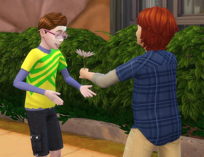 Jaz presented Colin with a wild daisy they’d found in the backyard. “Happy Love Day, Colin! I’m so glad to see you!”