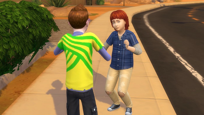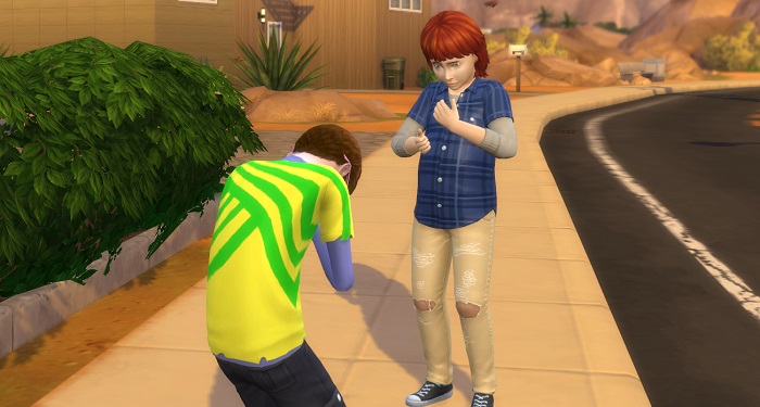 Running around the house to the front yard, Jaz occupied themselves with their soccer ball, and before long, Colin came running from the bus stop around the corner. Jaz put the ball down and ran to greet her best friend.