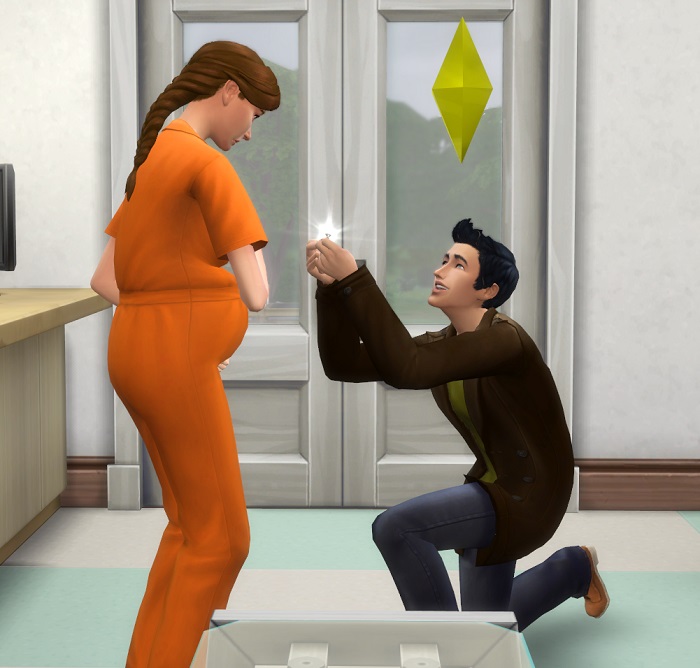 She walked out in jailhouse clothes, being that her other clothes didn’t fit anymore, and was immediately met by Cade Yeagar.