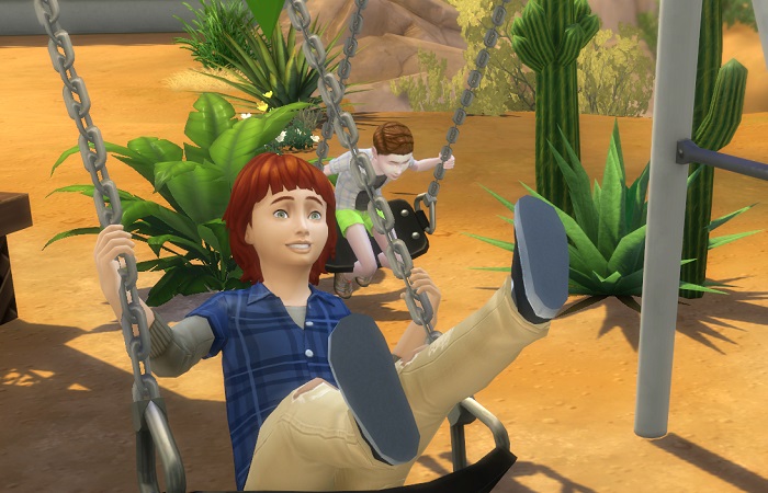 The two of them played on the swingset for a while..