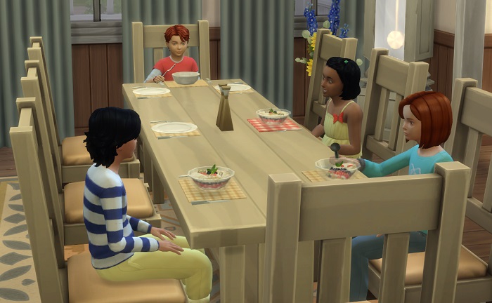 “I have the chores up on the board for a reason. Each of you help out on your day, and whatever’s left, is my job as the Mom of the house, okay? We can’t have you doing all my work for me, silly!” Wendy paused, looked at the crestfallen expression on Jaz’s face, and rethought what she’d said. “You haven’t done anything wrong, Jaz. Just too much of a good thing. I want you kids to be able to be kids and have fun, not always be working around the house. It’s important to me. Take some time for yourself, too, okay? And get to bed when everyone else is, too. No more late nights washing dishes, okay? … Please?”