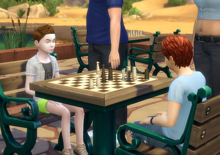 Colin finally caught the ball, and slightly out of breath, laughed and said, “Perhaps we should go play chess instead? I spy an empty table over there!”