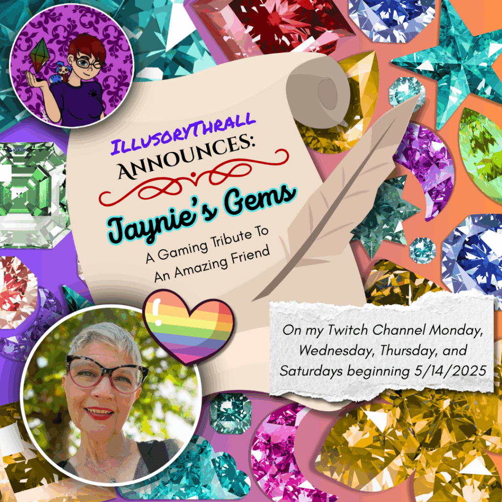 This is a massive tribute to one of my very best friends (RainyJaynie) – who will very soon no longer be the true inspiration and light she has been to so many of us. This is a series of 55 games (or sets of games) that I have hand-picked from games that she either loved, WOULD HAVE loved, never finished, or wanted to play and never got to. Most of which she either recommended to me, or I brought to her attention, and were already on my “to play” list. There are also a series of 10 “filler” games that I will be using as “palate cleansers” of sorts in-between games, or during games when I need a break (all of these games also fall into the “Jaynie’s Gems” category). This list of games includes a LOT of games I would not ordinarily play – on stream or otherwise. Puzzlers, Role-playing games, games with a lot of story and reading, and even city-building games. I have tried to include a wide variety of games, and I have spent HOURS finalizing the list, adding, removing, re-ordering, researching, etc. Each and every game is on the list for a reason!