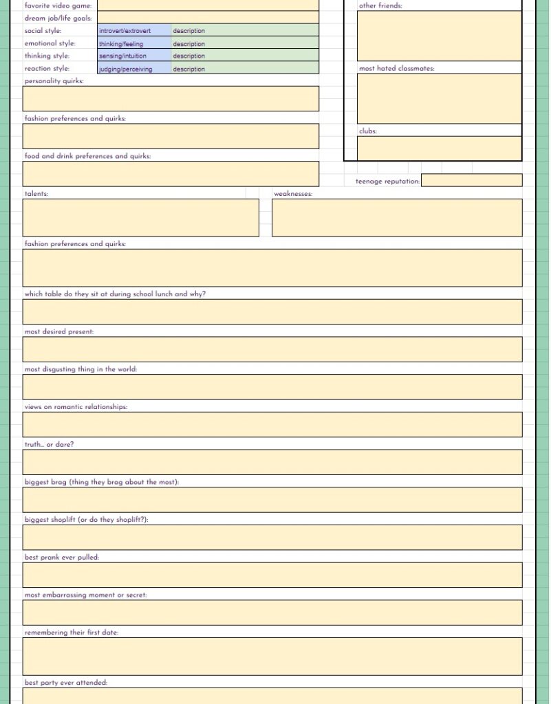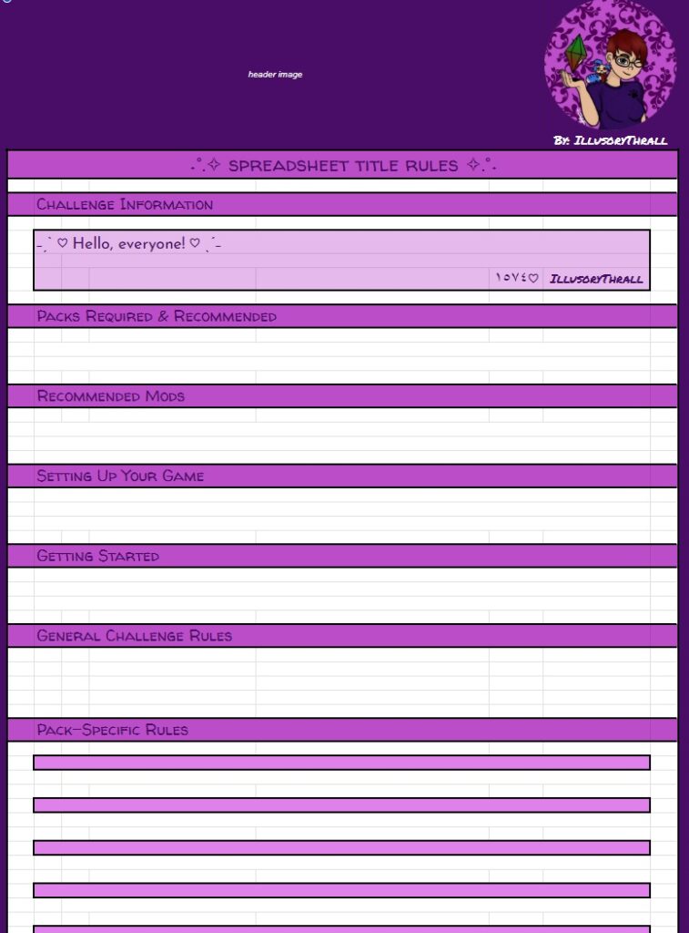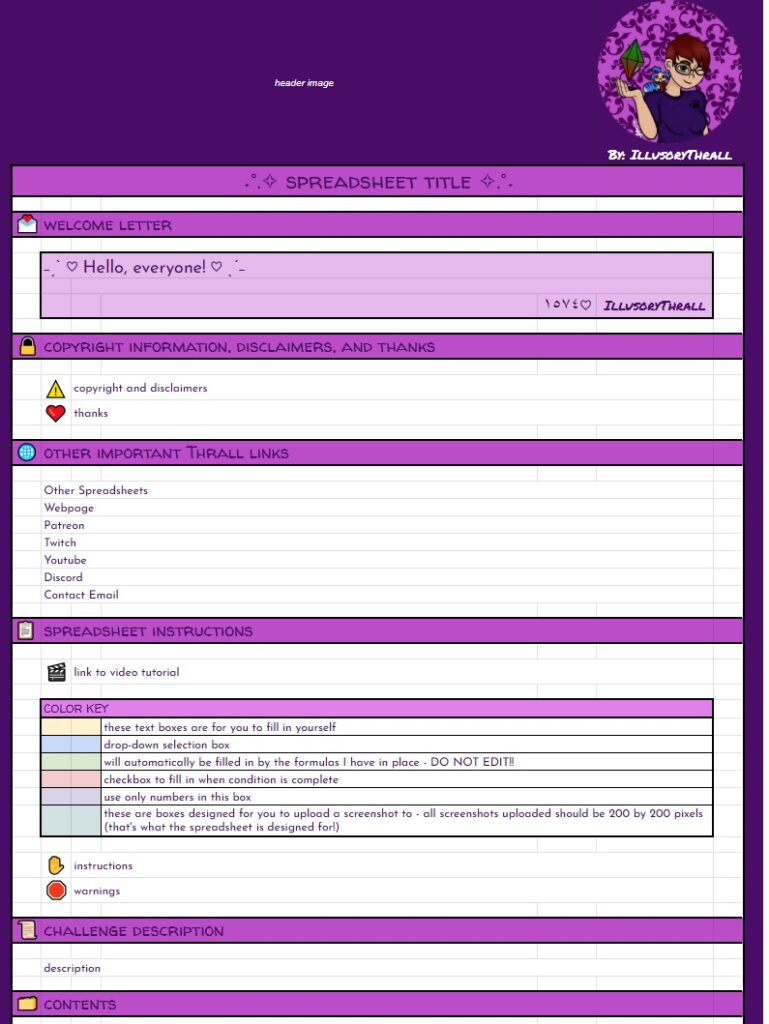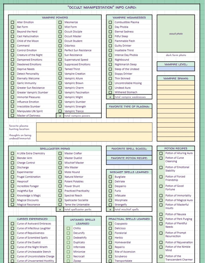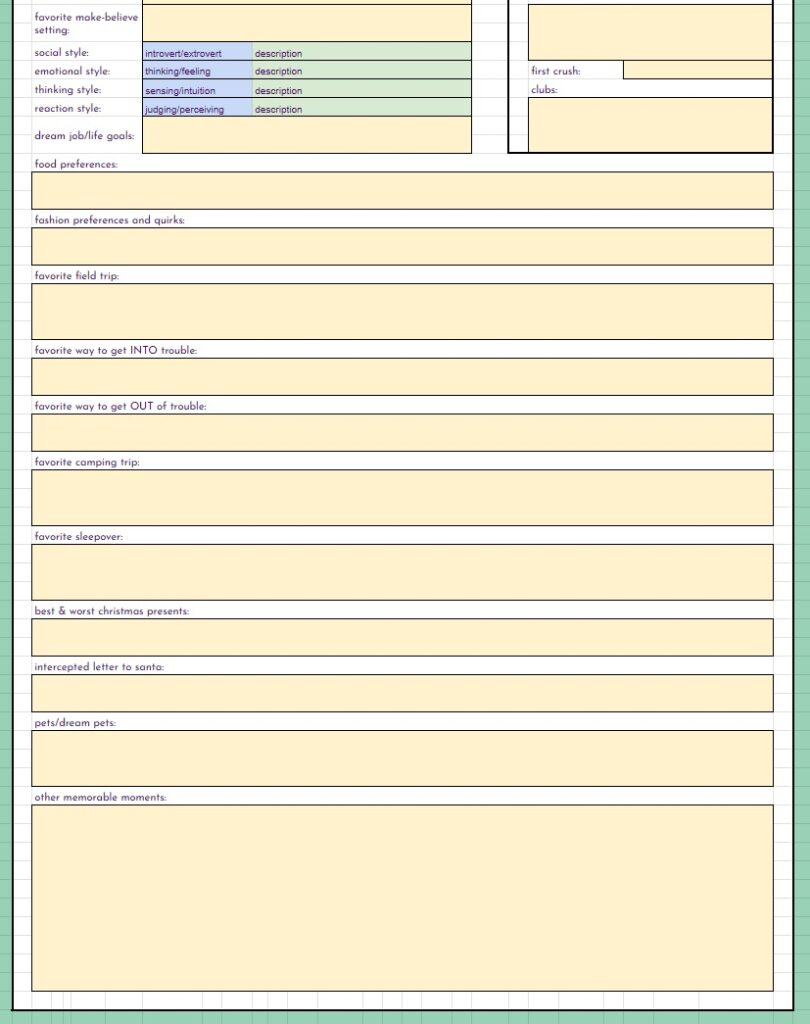 BUT… THAT’S NOT ALL!! On top of the free spreadsheets I showed the starting templates for above… I will also be offering for a small fee (probably through patreon, maybe etsy as well) spreadsheets with even MORE info for you to track your sims with. These will be basically the same as the free version with the notable exception – they will have a linked, working, fully functional Sims Story page. It’s detailed, it’s gorgeous, it’s amazing, I cannot say enough about it. And not only is it amazing in it’s full form, EACH SECTION will be able to be minimized so you can reduce scrolling if you’re on later generations. I will be making a “Storyteller’s Dream” tracking version for ALL of my challenges, as well as for Super Sim, and a plain old 10 generation legacy. If enough people are interested, I may even make a sheet for longer legacies. Now, before you complain that it’s going to be paid… I’ve put so many hours of work into this, it’s not funny… and also, there will always be the free, fully functional version without the massive story tracking page(s).