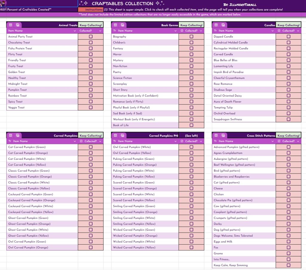I am setting up some templates to make spreadsheet trackers for ALL of my challenges, not just the big ones. As soon as the templates are fully set up and working, I will be able to put together and update ALL of my existing spreadsheets, and all my challenges for the new packs they’re missing. I will be starting with the Not So Berry and moving on to Timeline Adventure, I think… then one by one through my other things, INCLUDING the Super-Sim tracker some of you seem to really enjoy!