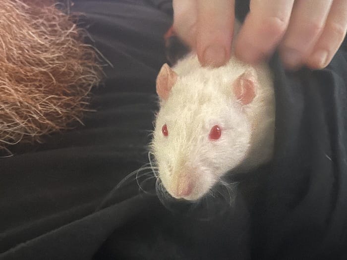 And that’s enough of that. Thanks, anyone who got to the bottom of this post… and … if you did, I have a present. Meet hubby’s cute curly rat, Sebastien! <3