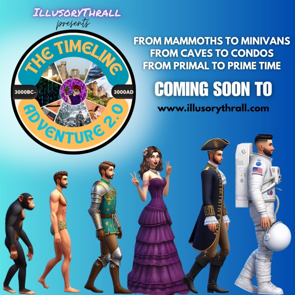 Final note: I have been informed of some … er… Creator Network news that I cannot share (yet – August 26th cannot come soon enough!!) that WILL be affecting the currently planned Timeline Generation set-up. At this time, the plan is to add a gen in before the planned gen 9 with the coming stuff (so, in other words, you are STILL safe to start play, because hopefully you won’t be all the way to that gen before said upcoming stuff comes out. (… if you’re wondering about this affecting NSB, it will, but I add generations for ENSB at the END of the challenge, not by where in history they fit the best…)